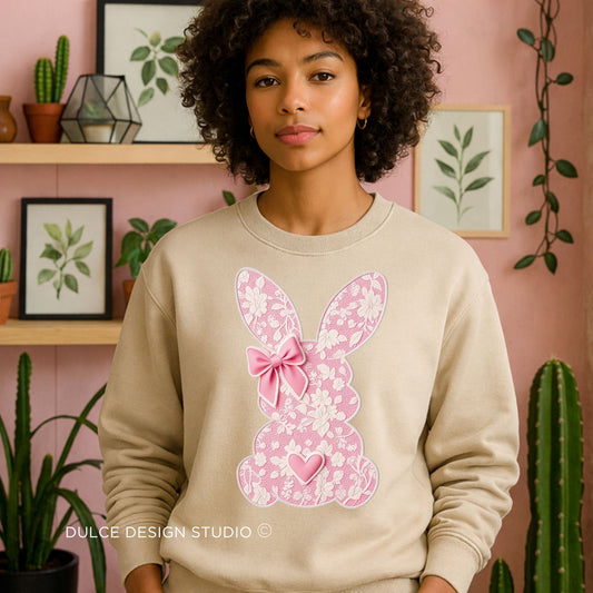 Pink Floral Bunny Sweatshirt - Cute Kawaii Easter Graphic