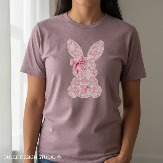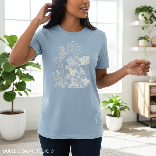 Faux Lace Bunny Tee - Cute Floral Easter Graphic