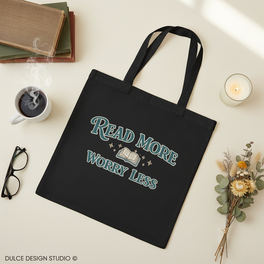 Read More Worry Less Tote Bag - Retro Reader Design