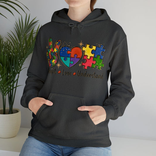 Peace Love Puzzle Hoodie – Inclusion & Advocacy Graphic