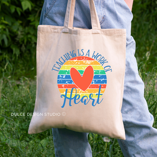 Teaching Is a Work of Heart Tote – Rainbow Teacher Gift