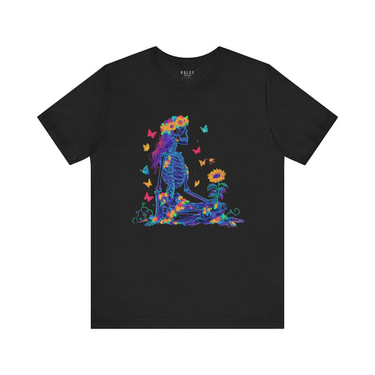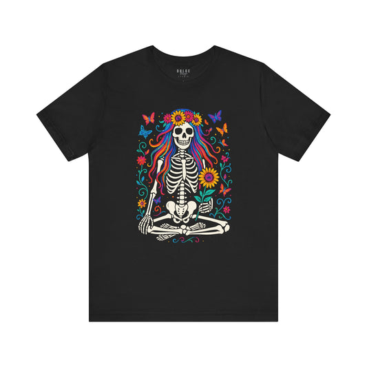 Meditating Skeleton Tee – Rainbow Hair Boho Skeleton Shirt