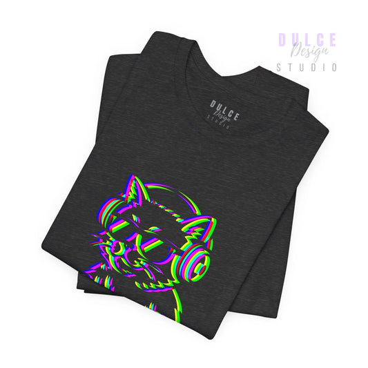 DJ Cat Tee – Vaporwave Glitch Art EDM Tee