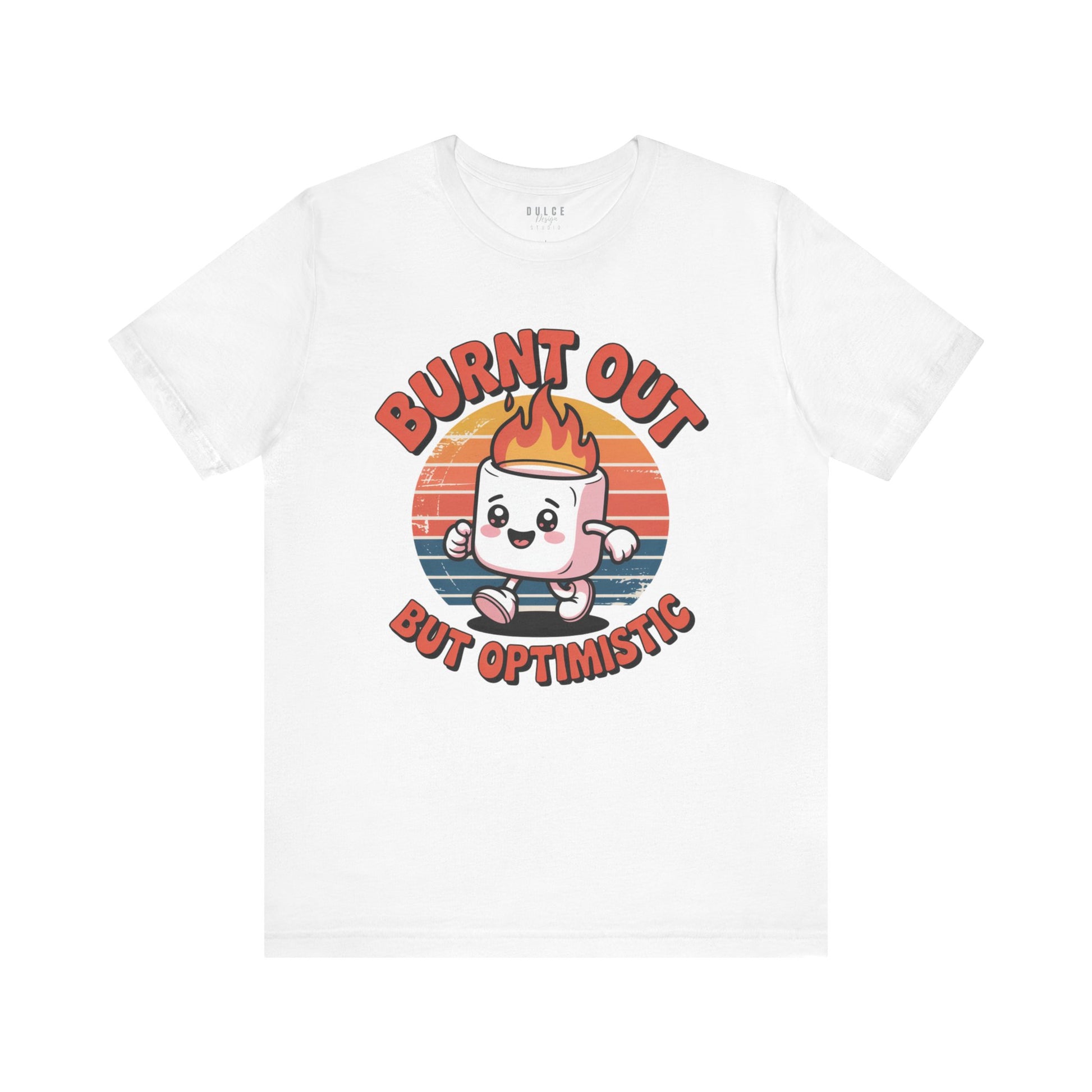 Burnt Out But Optimistic Shirt – Funny Marshmallow Retro Graphic Tee